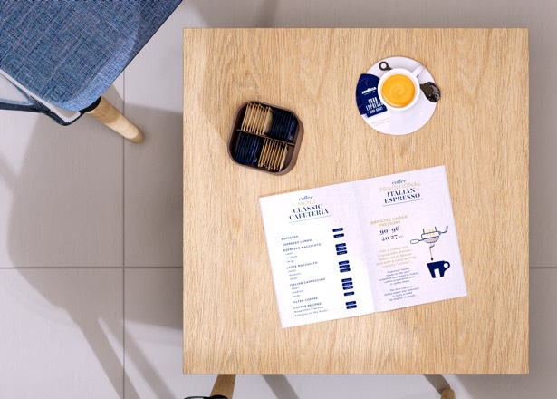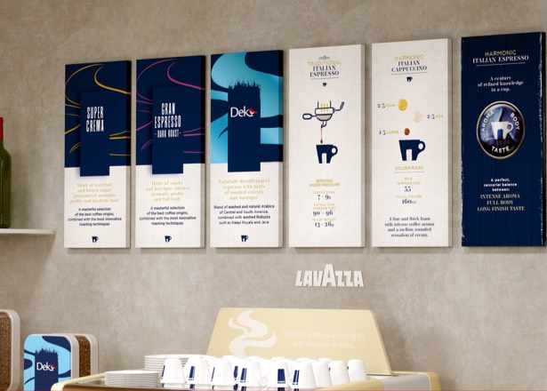Дизайнът предава същността на темата „произведено в Италия“ за богат избор от кафе с елегантен, съвременен вкус.
