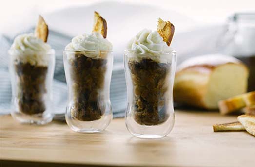 Накрая сервирайте гранитата в чаша, гарнирана с една супена лъжица сладка рикота и филийка запечен бриош.
