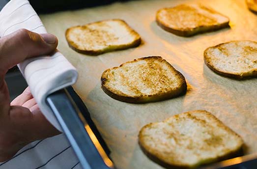 2. Запечете филийките бриош във фурната за 5 минути на 180°С.